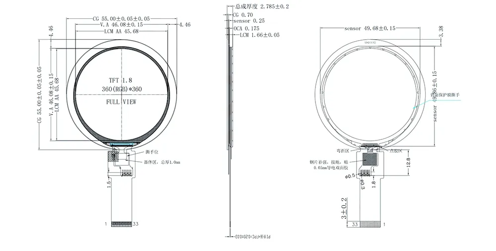 | पिक्सेल की संख्या | 360(आरजीबी)*360 | पिन की संख्या | 33 |