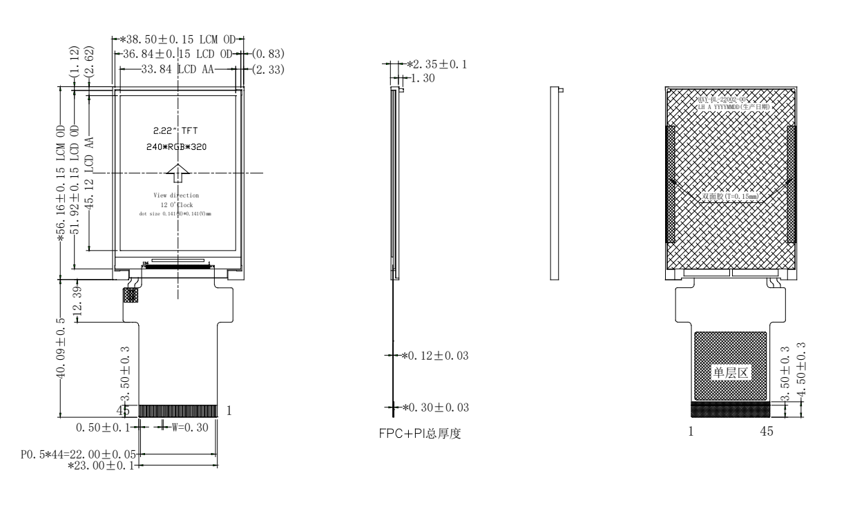 शेन्ज़ेन होंगजिया टेक्नोलॉजी लंबे समय से 2.2-इंच एलसीडी स्क्रीन की आपूर्ति कर रही है, निरंतर आपूर्ति सुनिश्चित करने के लिए एक सुरक्षित सूची बनाए रखती है। इस 2.2 इंच के एलसीडी डिस्प्ले का रिज़ॉल्यूशन 240*320 है, यह परिपक्व ST7789 IC का उपयोग करता है, उच्च विश्वसनीयता प्रदान करता है, और SPI/MCU/RGB इंटरफेस का समर्थन करता है, जिसमें 3/4-वायर SPI इंटरफेस, 8-बिट/16-बिट MCU इंटरफेस और 16/18/24-बिट RGB इंटरफेस शामिल हैं। 2.2-इंच टीएफटी स्क्रीन 2.4-इंच और 2.8-इंच एलसीडी स्क्रीन के बीच स्थित है, जो छोटे आकार की आवश्यकता वाले ग्राहकों के लिए उपयुक्त है, और माइक्रोकंट्रोलर्स का भी समर्थन करती है। इसे कई ग्राहकों ने पसंद किया है। हम लचीले केबल इंटरफेस, बैकलाइट ब्राइटनेस और टच स्क्रीन सहित अनुकूलित सेवाएं भी प्रदान करते हैं।